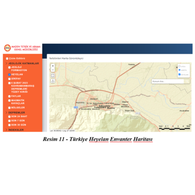 MTA yer bilimlerinden parselin ilçesine göre heyelan haritası ekran görüntüsünü alur ve bu verileri raporunuza ekler.