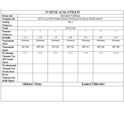Laboratuvar verileri doğrultusunda hangi sondaj kuyusundan kaç adet numune gönderdiğiniz hesaplanır ve otomatik olarak numune alma etiketleri oluşturulur.
