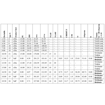 Her sondaj kuyusu için derinliğe göre sıvılaşma analizi otomatik olarak hesaplanır ve geoteknik raporununuza eklenir.