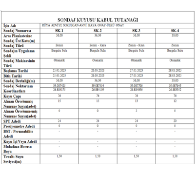 Her sondaj kuyusu için sondaj kabul tutanakları otomatik olarak oluşturulur ve raporunuza eklenir.