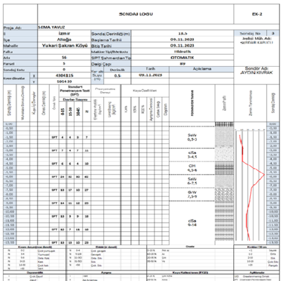 SPT vuruşlarınız ve karot deney verileriniz sonucunda sondaj logu otomatik olarak oluşur ve raporunuza eklenir.