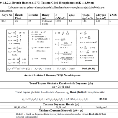 Seçmiş olduğunuz Meyerhof (1963), Brinch Hansen (1970) ve Vesic (1973) yöntemlerinden biri ya da hepsi ile yapılan taşıma gücü hesaplamaları geoteknik raporunuza eklenir.