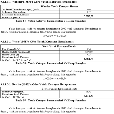 Seçmiş olduğunuz Winkler (1867), Vesic (1961) ve Bowles (1988) yöntemlerinden biri ya da hepsi ile yapılan yatak katsayısı hesaplamaları geoteknik raporunuza eklenir.