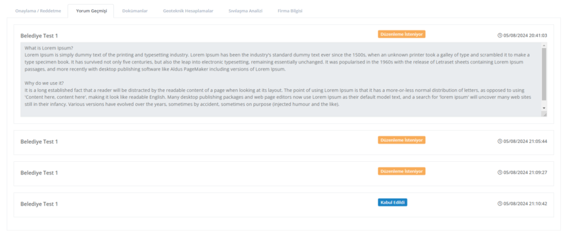 Daha önce istediğiniz düzeltmeleri liste olarak görebilirsiniz, daha önce ne istemiştim diye düşünmenize gerek kalmaz.