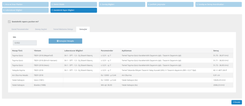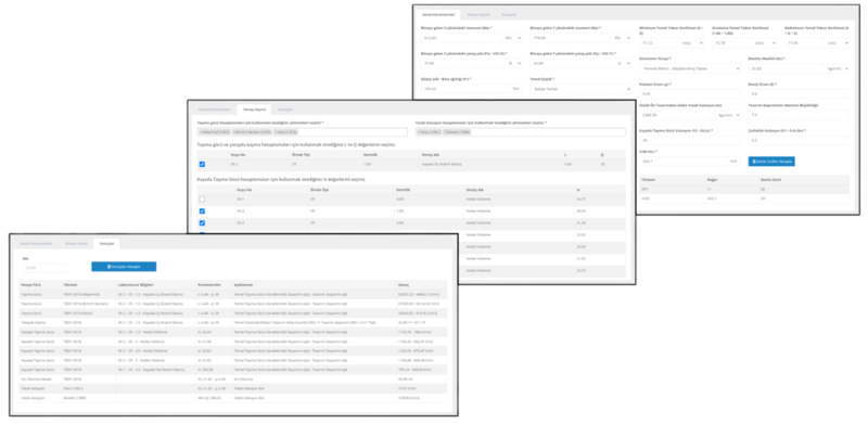 Dışarıdan yüklenen geoteknik raporlarında, ilgili rapora sadece bir kaç parametre girdikten sonra bir kaç deney ve yöntem seçerek bakanlık yönetmeliğine uygun geoteknik hesaplarını yapabilir ve karşılaştırabilirsiniz.